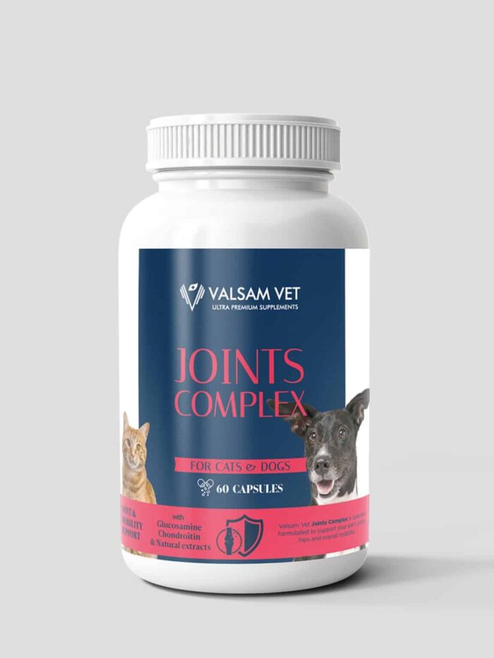 Το Valsam Vet JOINTS COMPLEX είναι ένα προηγμένο συμπλήρωμα διατροφής, ειδικά σχεδιασμένο από κτηνιάτρους, για τη συνολική υποστήριξη της υγείας των αρθρώσεων και του μυοσκελετικού συστήματος. Η πρωτοποριακή του φόρμουλα συνδυάζει φυτικά εκχυλίσματα, βιταμίνες και πολύτιμα ιχνοστοιχεία, τα οποία δρουν συνεργιστικά για την ενίσχυση της ελαστικότητας του χόνδρου, τη μείωση της φλεγμονής και τη βελτίωση της κινητικότητας.
